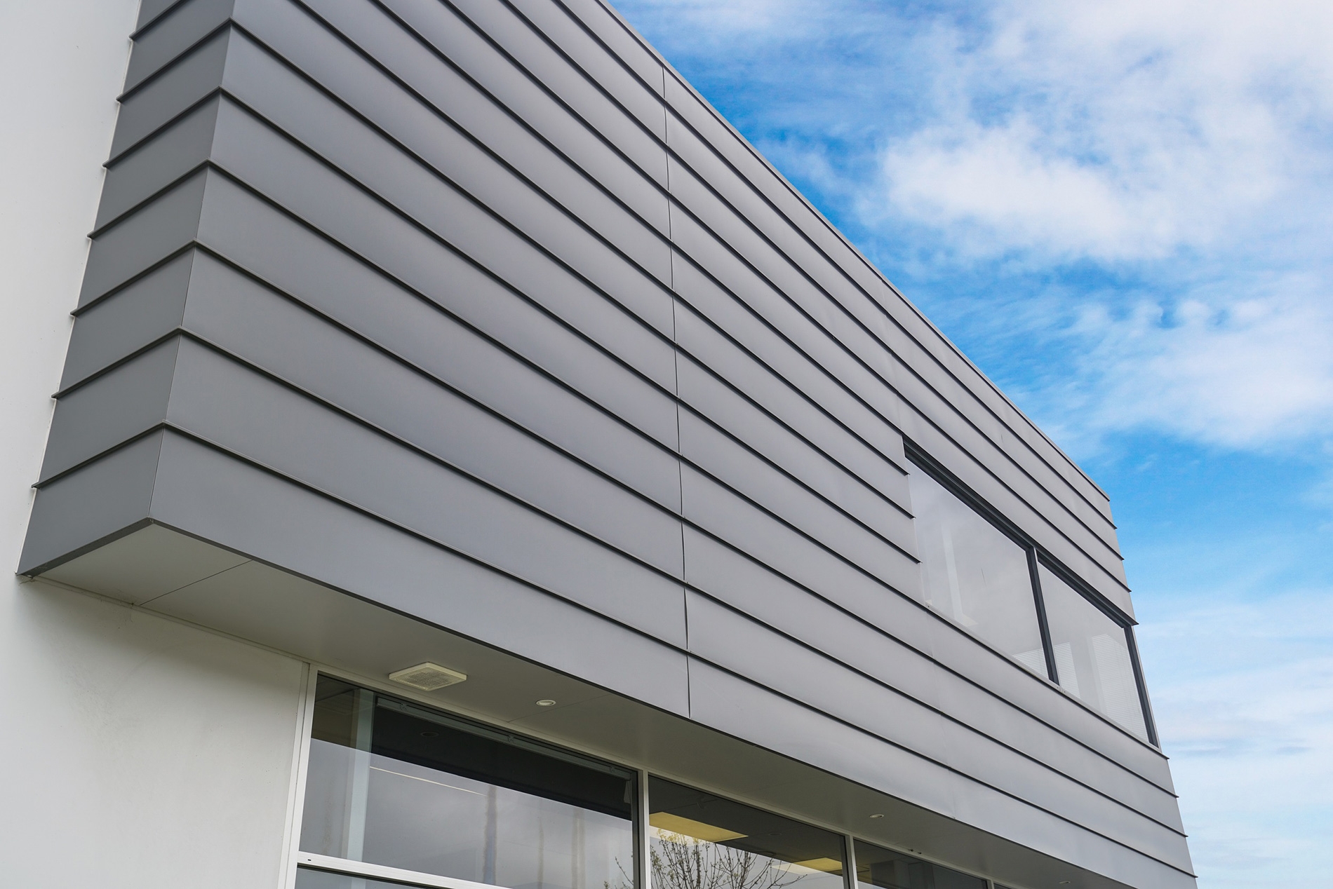 Originating in Europe this profile contributes to a pleasing wide pan tray and is available in seam heights of 25mm or 38mm but usually formed at 25mm. The Angle Seam profile is fixed to a substrate with concealed clips. The angle seam may be completed in a range of materials including Copper, Zinc, pre-painted Aluminium and pre-painted steel.
